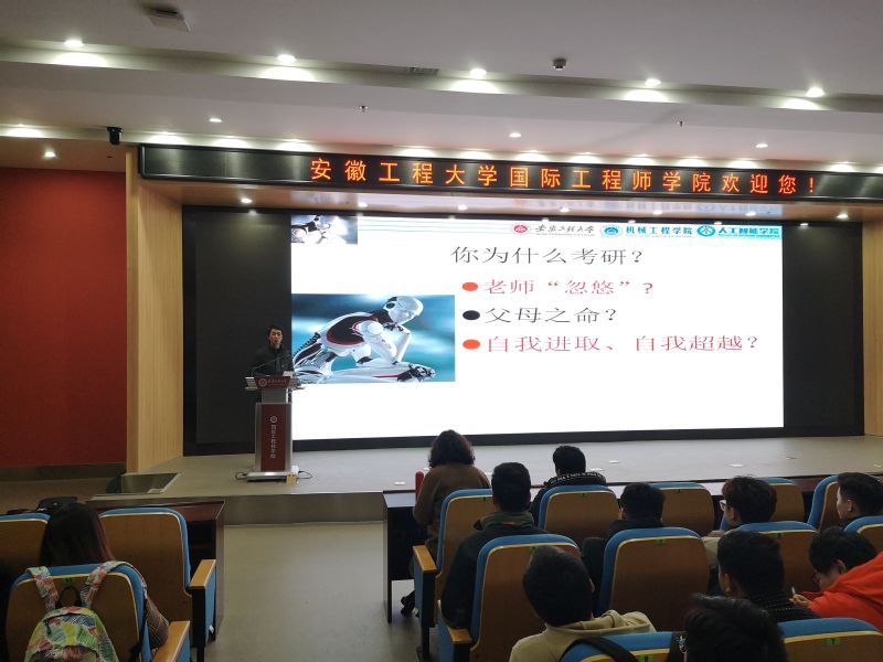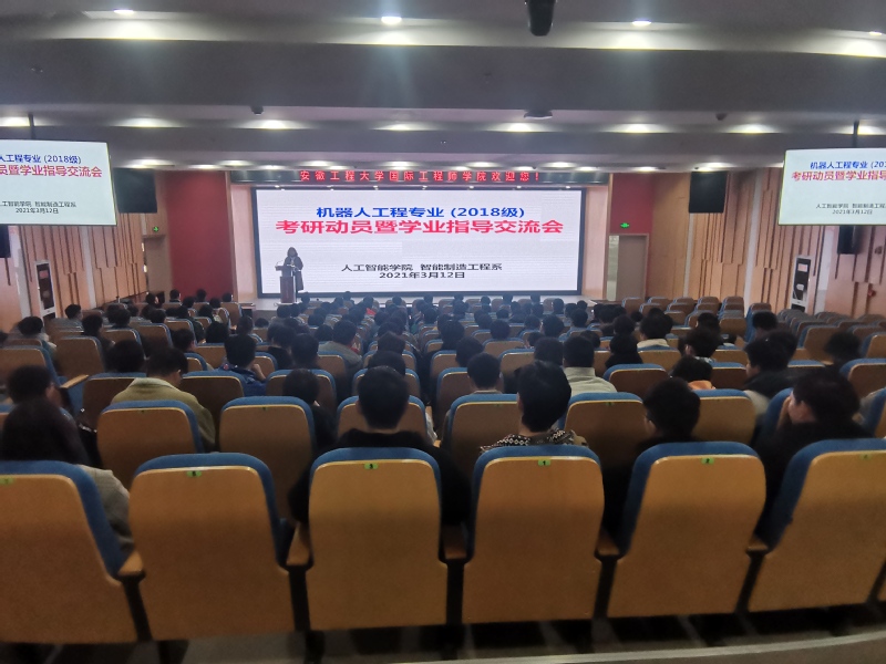 3月12日下午,英国365集团官网在国际工程师公司大报告厅举行机器人工程专业2018级考研动员暨学业指导交流会。公司党委副书记李文江、教师代表、机器人工程专业2018级全体员工共160余人参会。交流会由智能制造工程系主任刘玉飞主持。
