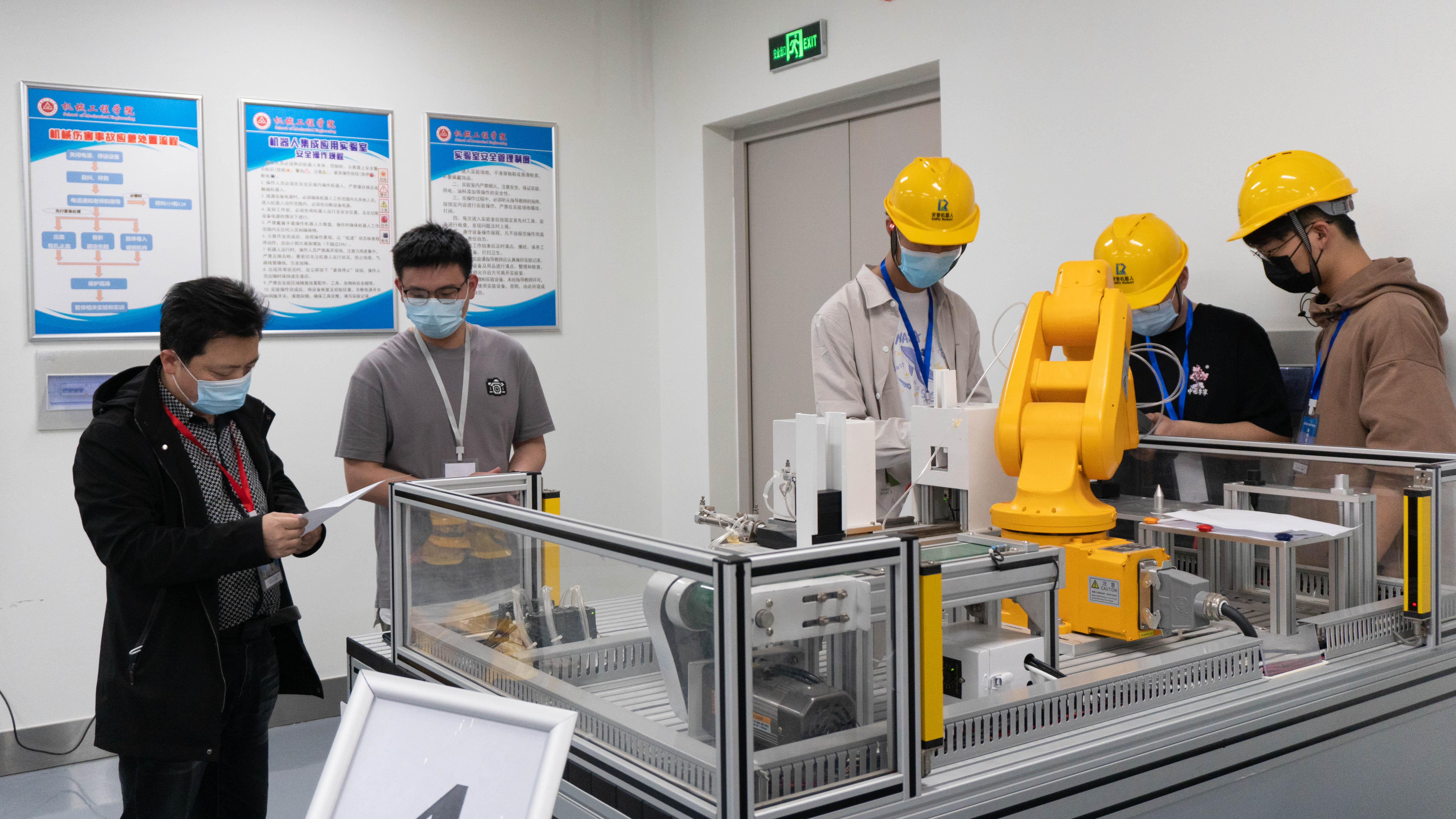 举办工业机器人应用大赛是贯彻深化高等公司创新创业教育改革的有关要求,推动公司机器人领域人才培养,实现“以赛促学,以学促用”的重要举措。为确保赛事的顺利举办,公司成立了赛事筹备组,按照疫情防控管理规定,提前采购疫情防控物质,组织专业教师采取线上线下相结合的方式进行赛事培训和答疑,通过学习通等公共平台共享技术资料,确保员工顺利备赛;比赛期间,公司领导亲临现场指导,报到检录组、技术保障组、后勤保障组、志愿工作组、新闻报道组分工协作,圆满完成各项工作。