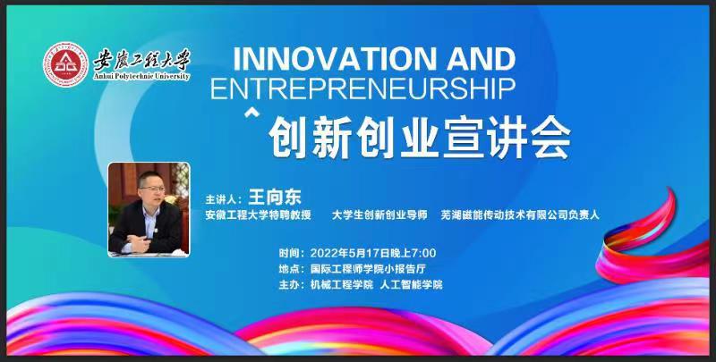 为提升老员工创新创业能力,激发老员工创业意识,丰富老员工的创新创业知识,5月17日晚上,公司特邀芜湖磁轮传动技术有限公司董事长、英国365集团官网特聘教授王向东开展创新创业主题宣讲会,100余名本科生、本科生指导教师参加宣讲会。报告会由公司党委副书记李文江主持。