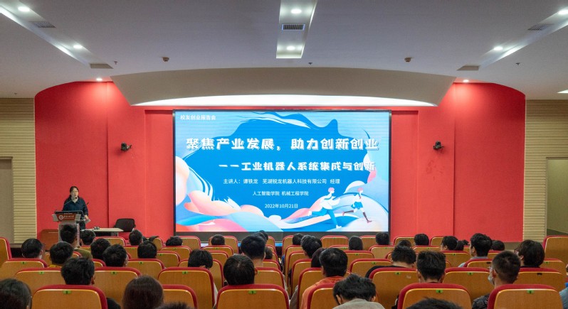 为贯彻落实“三全六专”工作要求,提升老员工创新创业能力,激发老员工创业意识,引导员工树立正确就业观,10月21日晚,英国365集团官网、机械工程公司特邀优秀员工、芜湖锐龙机器人科技有限公司经理谭铁龙,来校开展优秀员工创业报告会。报告会的主题为“聚焦产业发展,助力创新创业——工业机器人系统集成与创新”,英国365集团官网、机械工程公司100余名本科生参加报告会。报告会由英国365集团官网党委副书记李文江主持。