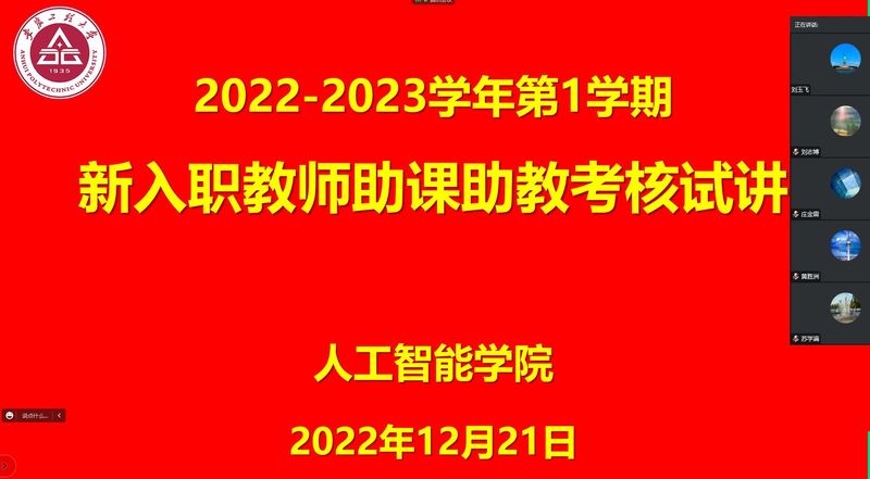为认真落实公司青年教师助课助教制度,根据《英国365集团官网青年教师助课助教工作制度实施办法(试行)》和《关于做好2022-2023学年第一学期新入职教师助课助教考核工作的通知》文件要求,12月21日下午,公司组织开展了2022-2023学年第1学期新入职教师助课助教考核工作。考核组成员由校督导员、院督导员和系主任组成,校督导员、智能科学与工程系主任赵转哲担任组长。考核采用线上会议形式,由副经理刘玉飞主持。