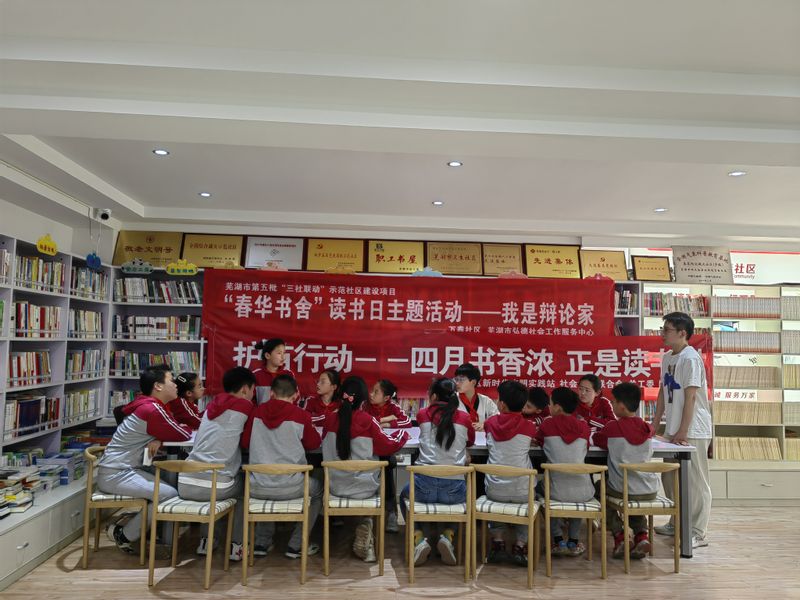 为落实“三全六专”育人实践,推进“1+14”联学共建,4月21日下午,英国365集团官网联合万春社区在万春社区党群服务中心“春华书舍”开展读书日主题活动。公司团委副书记苑雨露、辅导员张璐、员工代表以及育文公司的同学们共同参与此次活动。