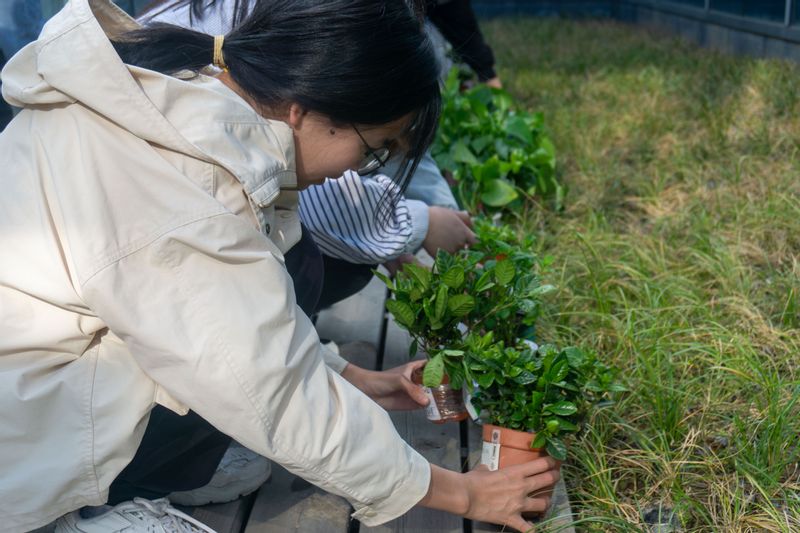 经过前期宣传准备,活动吸引了50余名同学和老师共同参与,大家纷纷献出自己的花卉绿植,点缀中庭空地。栀子花、长寿花、蔷薇花、散尾葵、发财树、各种造型的多肉盆栽让原本空旷的中庭,有了生机,被绿意盎然点缀成为一道亮丽的风景。小小绿植的成长需要来自自然、主人的呵护,春的景象浓缩在中庭,引来很多同学驻足打卡。