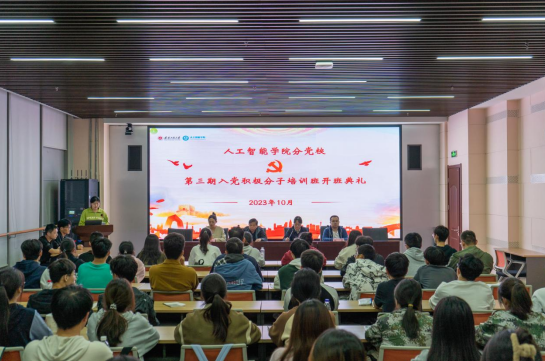 开班仪式在庄严雄壮的国歌声中拉开帷幕。智能制造221班张晓蕊作为入党积极分子培训班学员代表发言,她代表全体学员庄重承诺,广大青年要坚定不移听党话、跟党走,怀抱梦想又脚踏实地,敢想敢为又善作善成,立志做有理想、敢担当、能吃苦、肯奋斗的新时代好青年,让青春在全面建设社会主义现代化国家的火热实践中绽放绚丽之花。