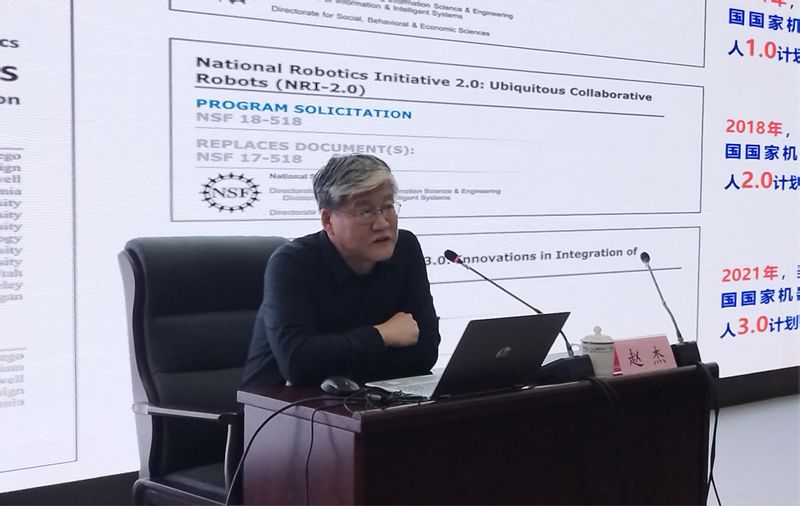 报告会上,赵杰用详实的数据和生动的案例,从当前形势研判、技术发展趋势、重点研究领域、重点专项介绍四个方面阐释了我国机器人发展面临的新变化、新挑战,同时围绕机器人产业链、机器人产业基础能力和产业链水平、机器人核心竞争力、机器人未来国际竞争战略格局等内容进行了详细论述,并就机器人基础前沿技术、核心关键技术、产业发展共性技术、产品与系统技术等问题分享了个人的思考和见解。整场报告会持续近两个小时,内容丰富信息量大,参会师生受益匪浅。