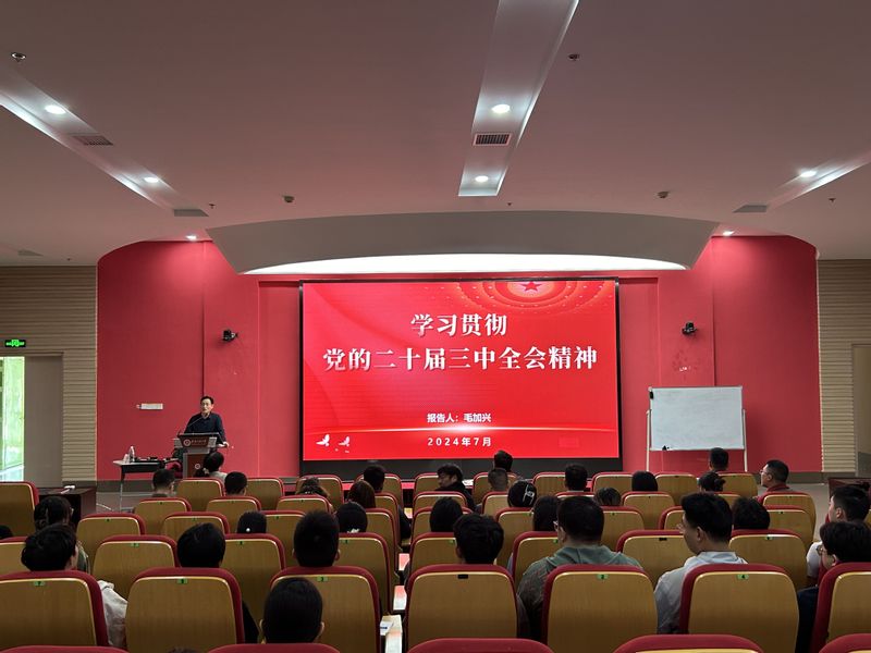 为学习好贯彻好党的二十届三中全会精神,引导广大师生将思想和行动统一到全会精神上来,10月9日,公司组织开展学习贯彻党的二十届三中全会精神宣讲,校宣讲团成员、马克思主义公司副教授毛加兴开展专题宣讲报告会,公司全体师生党员参加。报告会由公司党委书记任家钱主持。
