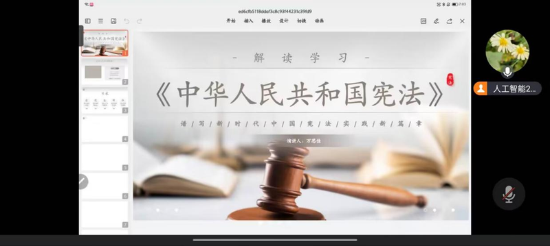为进一步弘扬宪法精神,增强法律意识,人工智能221团支部于9月24日开展了有关宣传宪法知识的主题团日活动。活动观看了有关宪法科普知识的视频,团支书通过PPT讲解了相关知识,随机抽取同学进行知识答疑等形式结合,让同学们对宪法知识有了进一步的了解,活动现场气氛热烈而紧张。