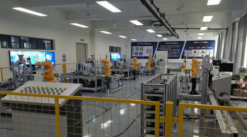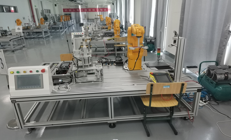 基于实践教学、科技创新和创业教育于一体的理念,建成的校内实训基地,建筑面积为5000平米。建成了“机器人认知”、“工业机器人”、“机器人集成应用”、“机器人协同作业”、“PLC控制”、“数字孪生”、“智能产线设计”、“云制造”、“移动机器人导航”、“机器人故障诊断”、“打磨和焊接作业”、“创新创业”和“员工工作坊”等15个专业实验室,设备总价值约3000万元,形成了功能完善,实验设备台套数充足,体系完整的校内实验实训基地。